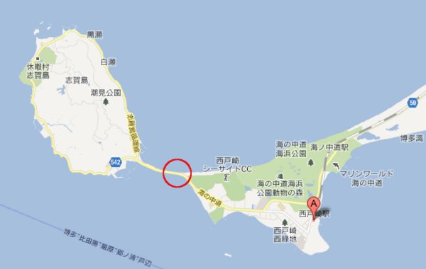 島とは言いますが、グーグルマップで上から見るとこんな感じ